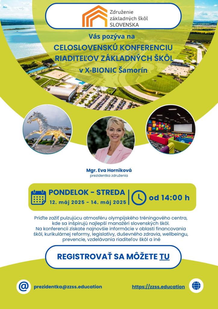 Pozývame vás na Celoslovenskú konferenciu ZZŠS, ktorá sa bude konať v dňoch od 12. mája 2025 do 14. mája 2025 v X-BIONIC HOTEL v Šamoríne.